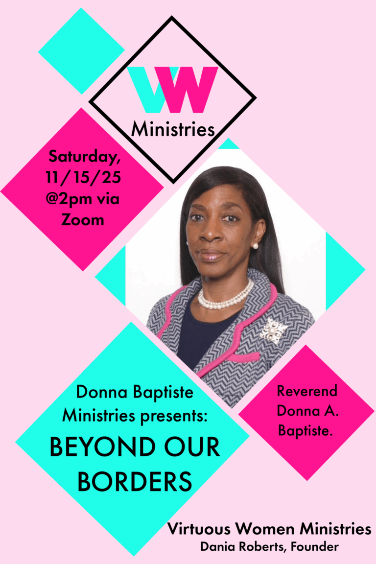 As a missionary, Donna served for 5 years in Mail, West Africa with the Christian and Missionary Alliance (C&MA) denomination. Reverend Baptiste is Founder, President, and CEO of Donna Baptiste Ministries, Inc (DBM)–an international preaching and teaching ministry which founded and hosts an annual Non-Profit, Business and Ministry Development Seminar. She hosts the Radio Program Pursuing God (Mondays 9.00pm on WMCA –The Mission 570am).